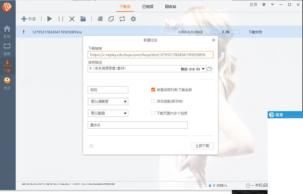 https://v-replay.cdn.huya.com/vhuya/dot/12795217824541765050859.m3u8 虎牙的视频。怎么创建任务下载不了。显示下载失败
