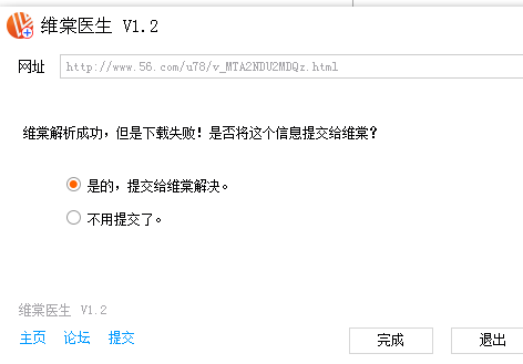 您好!我今天刚试过,56的视频还是只能解析不能下载 http://www.56.com/u78/v_MTA2NDU2MDQz.html http://www.56.com/u41/v_MTAwMjY4OTAy.html 版是2.0.9.4 维棠医生诊断过了,也是一样的