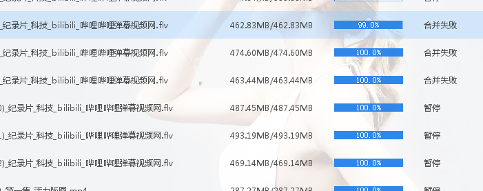 这是B站视频编码问题,第一个片段时mp4格式,后面的是flv。。合并一般只能同种格式合并,B站的部分视频编码太乱