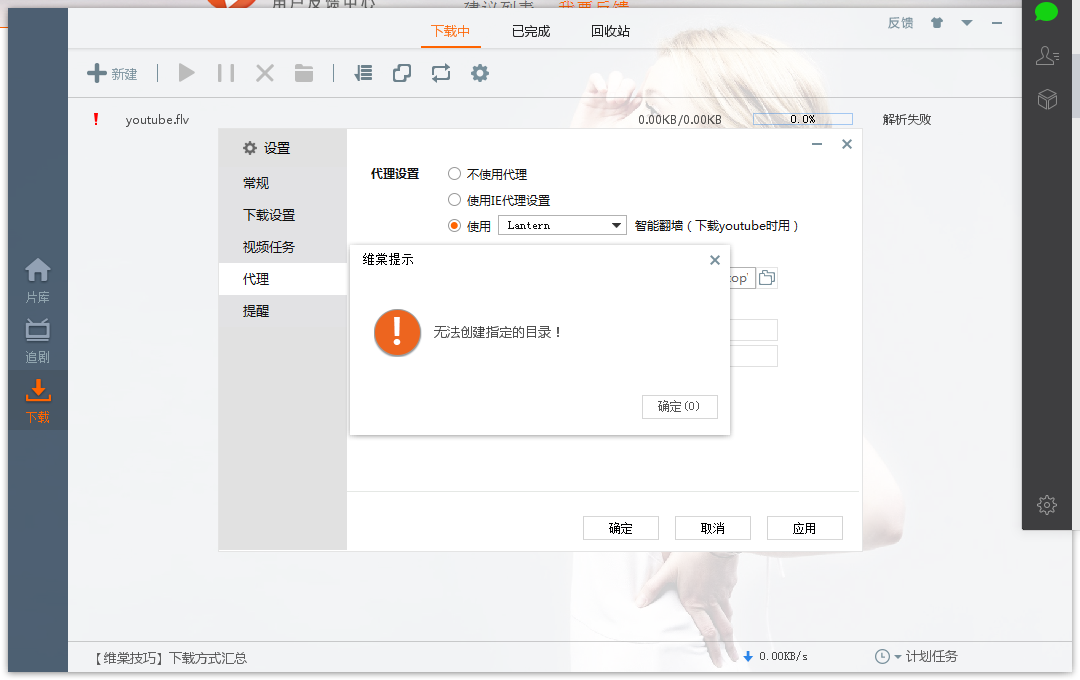 我维棠的设置不能改啊,一改就是无法创建指定目录 想用指定vpn下视频的呢