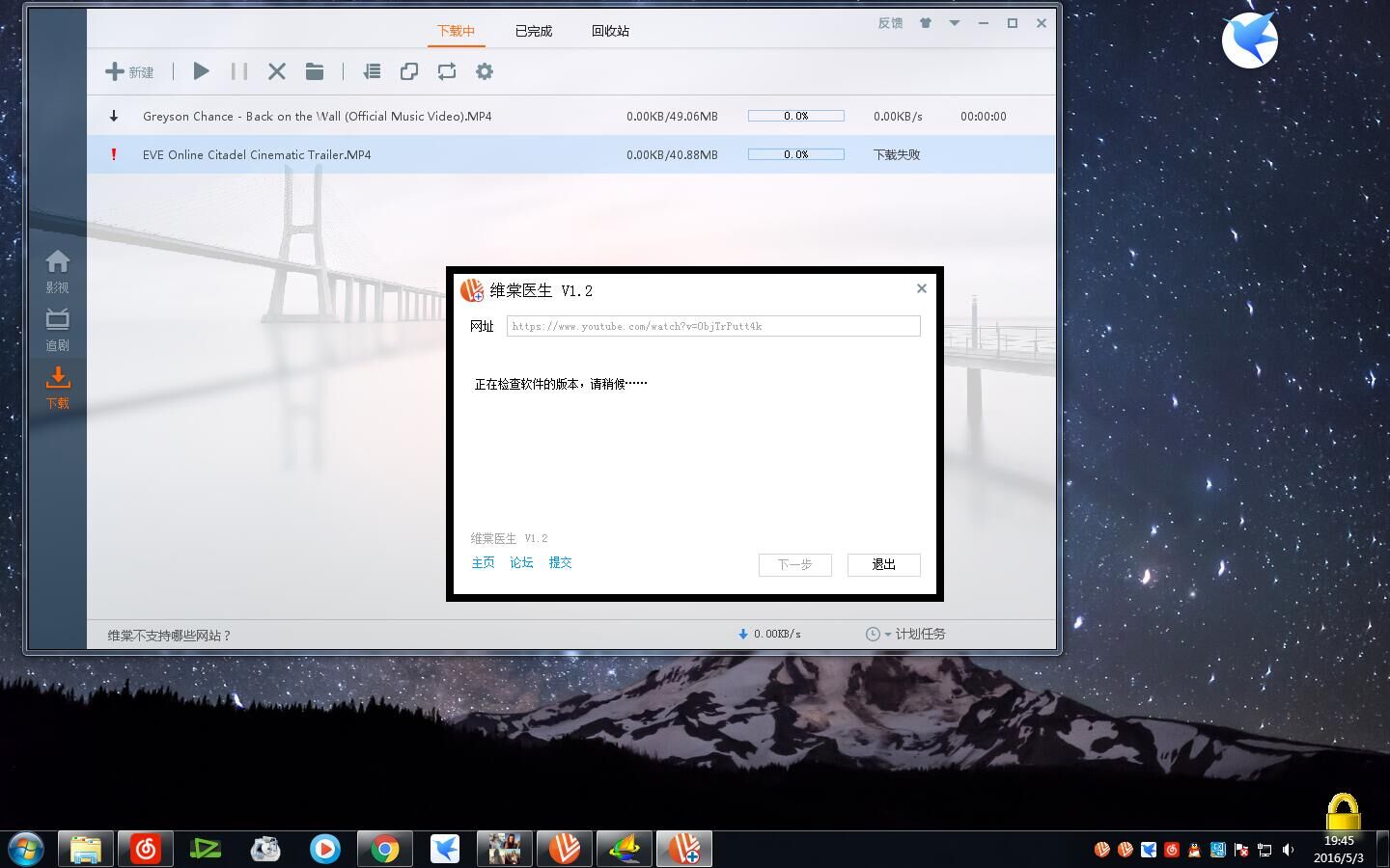 你好: 我用维棠下载YOUTUBE的视频,用无界浏览器翻的墙。 设置里的代理也弄成了无界, 为什么还是下载失败? 用维棠医生也半天诊断不出结果? 希望您能给我解答一下,真的非常感谢!
